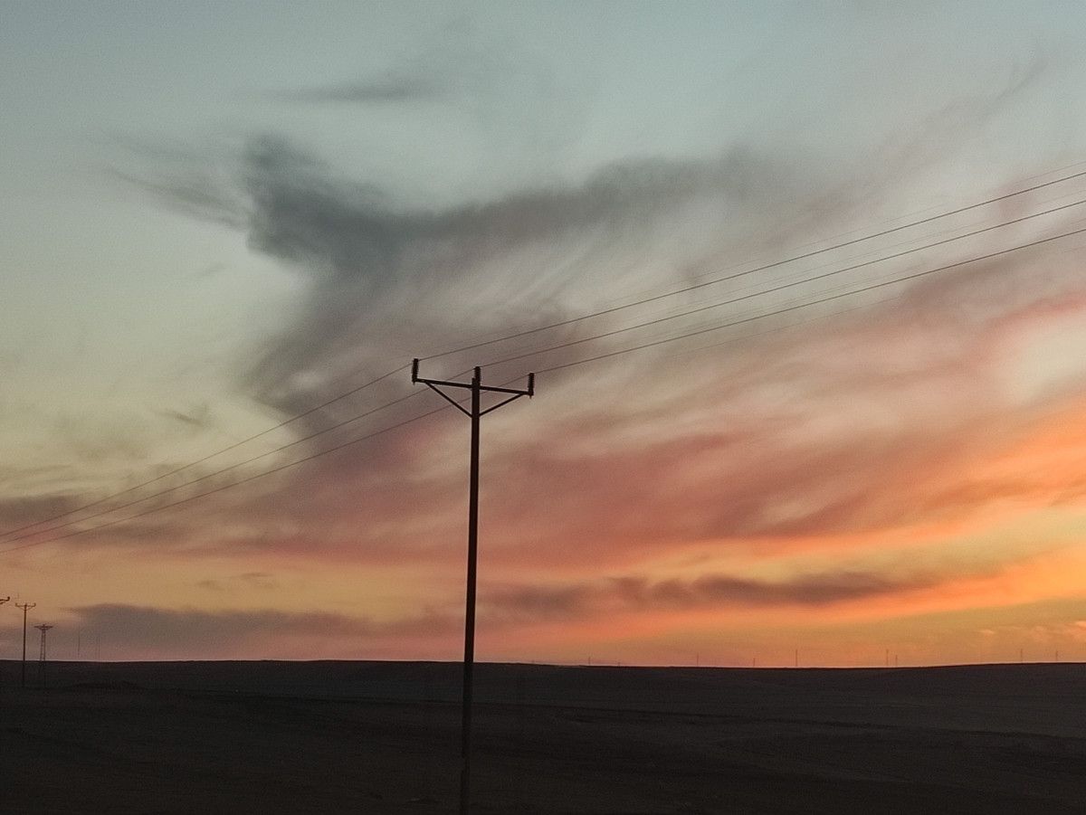 Damal ilçesinde gün doğumuyla birlikte gökyüzü kızıla boyanırken, ortaya çıkan manzara mest etti.