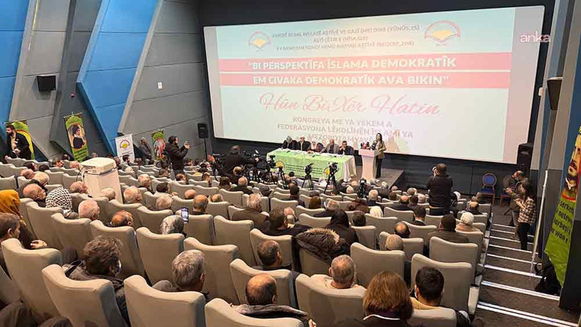 Kongre salonundaki barkovizyonda yalnızca Kürtçenin yer alması dikkati çekerken, salon da Said Nursi fotoğraflarıyla donatıldı.